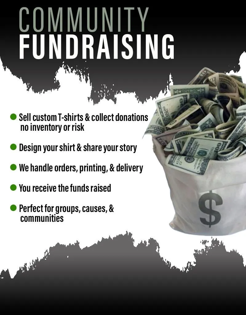 Turn your next school, team, or community event into a success with custom-printed apparel and merch. A1 Custom Printing makes fundraising simple - you choose the design, we handle the printing, sales, and delivery so your group keeps the profits.